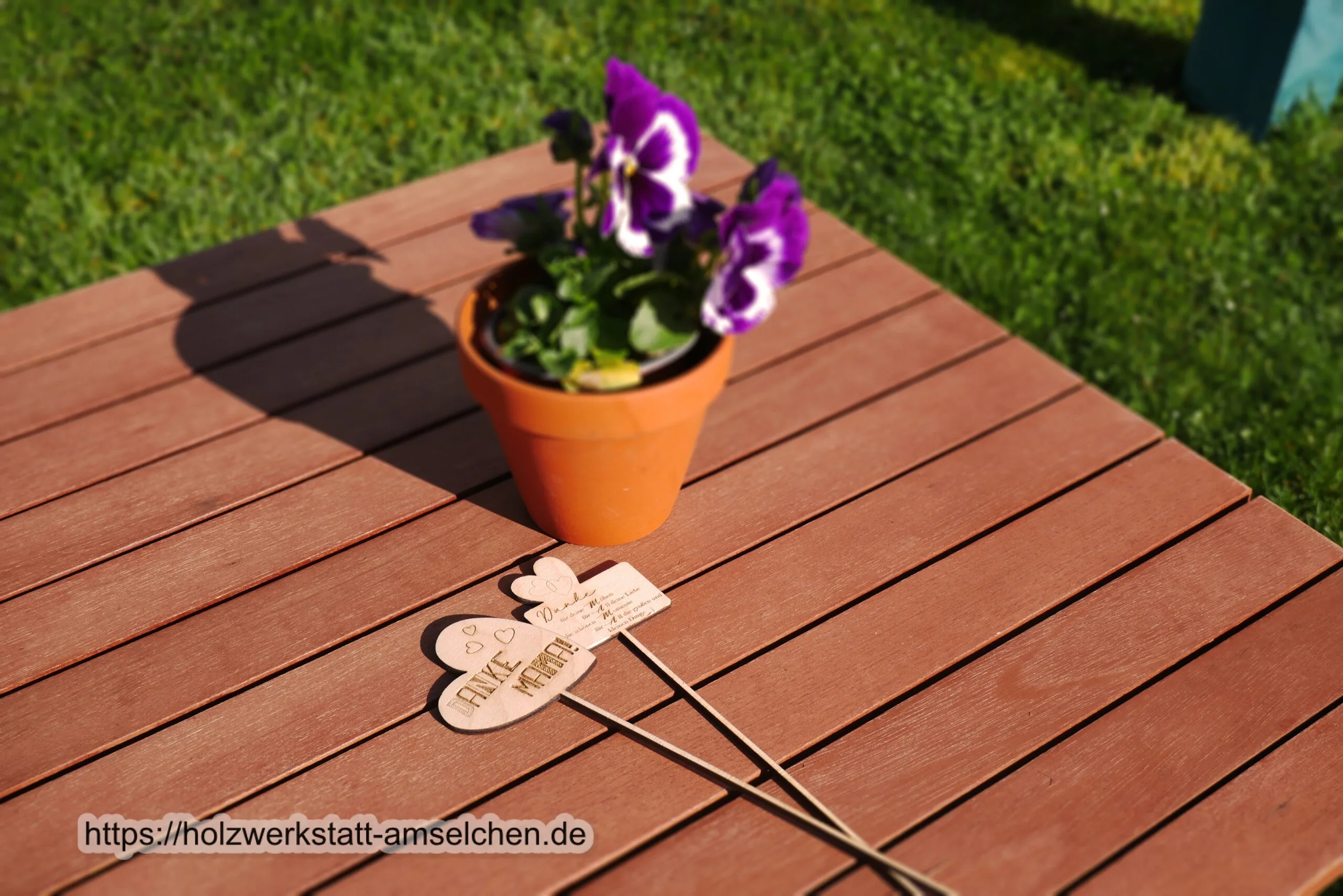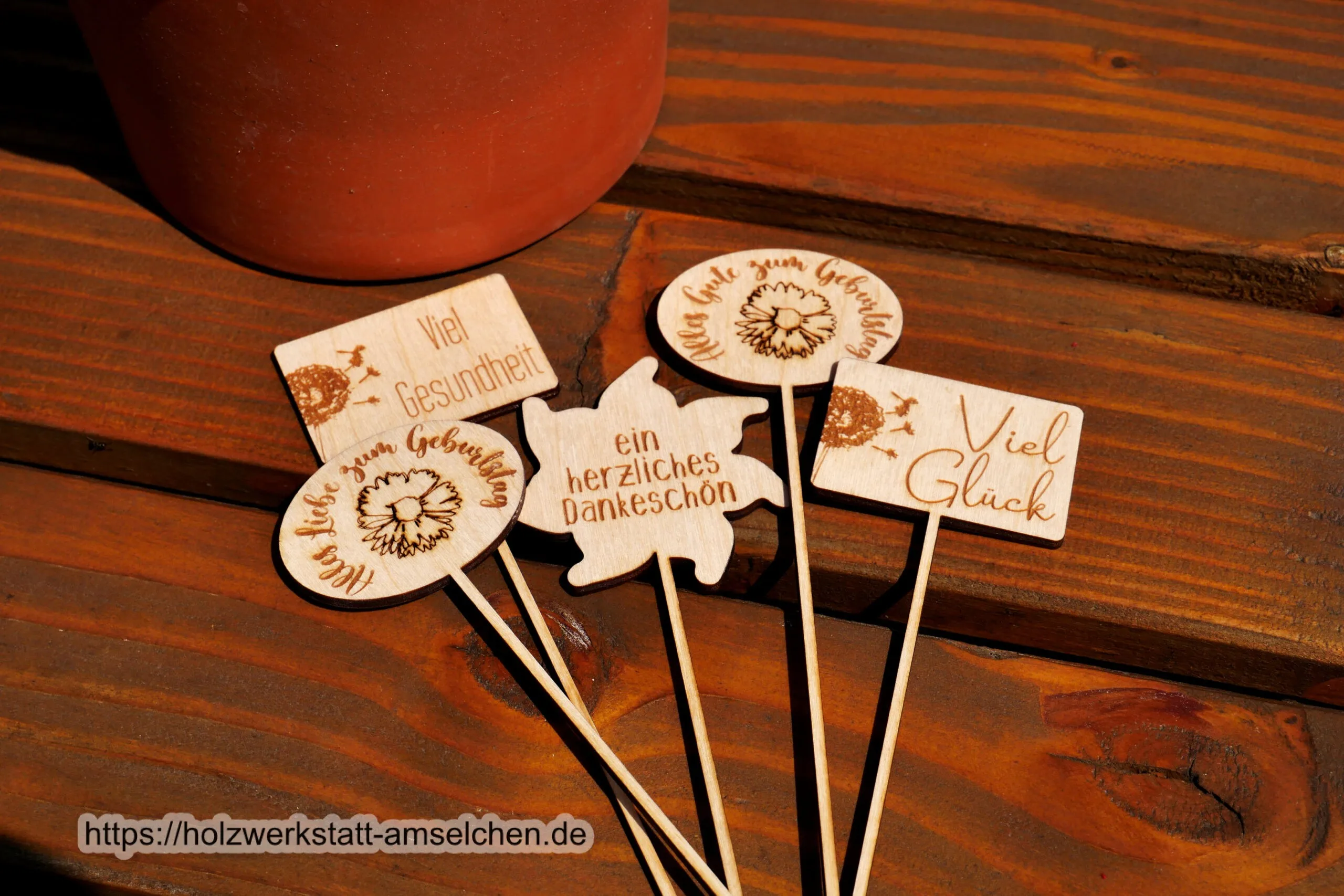 Personalisierte Pflanzstecker aus naturbelassenem Birkensperrholz.